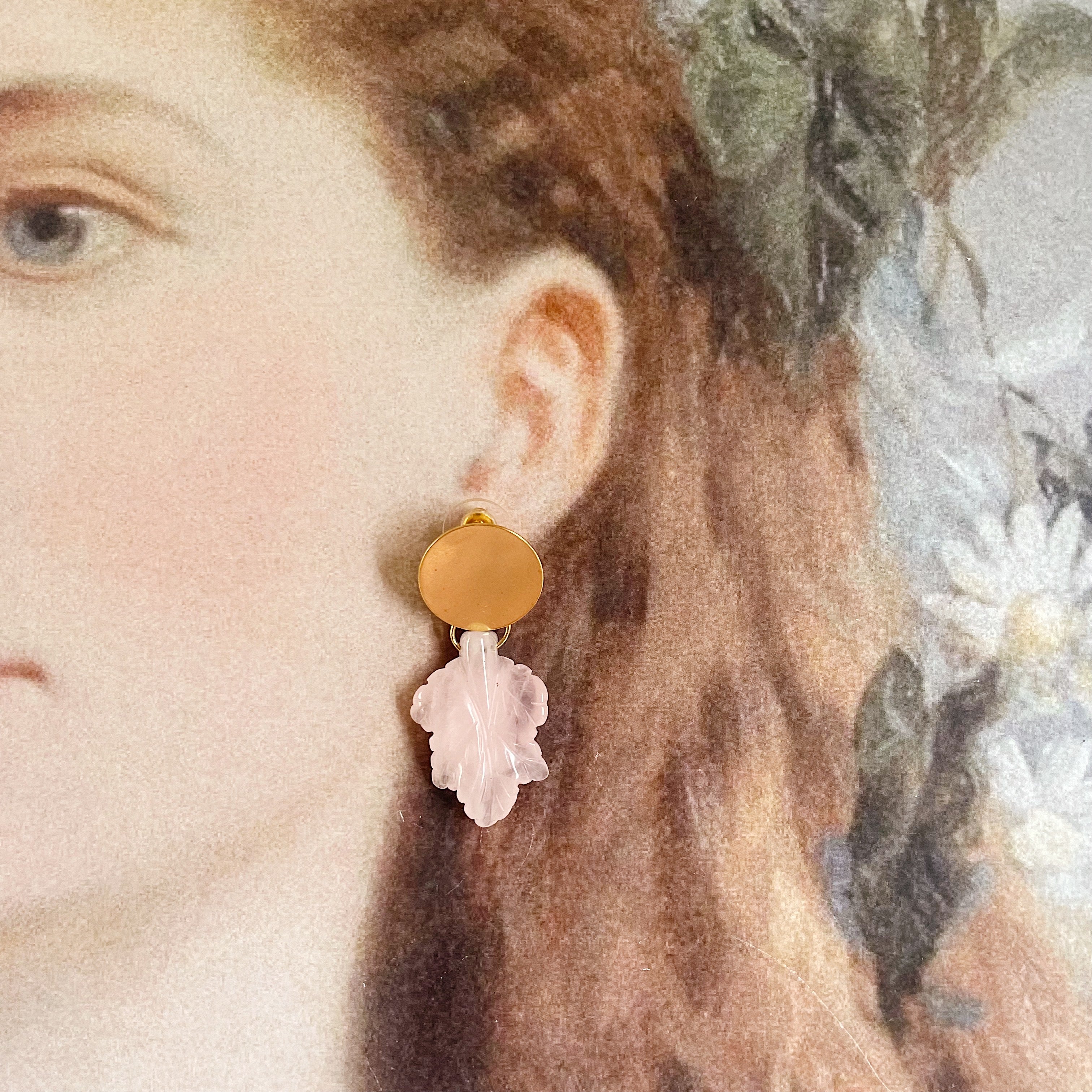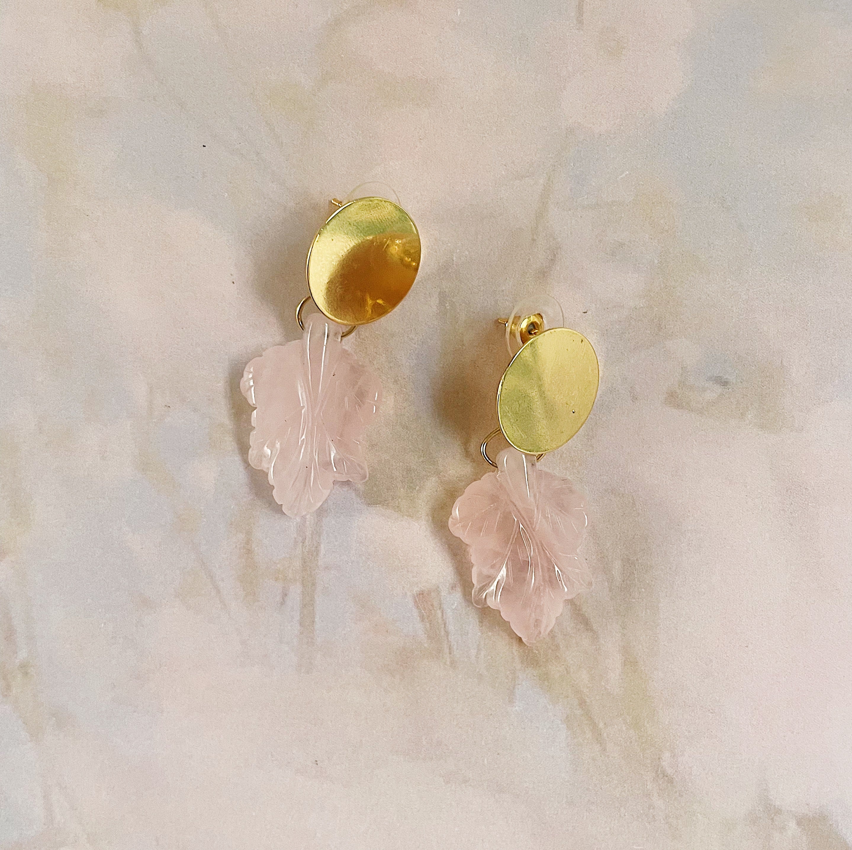 Aretes Hojas cuarzo rosa