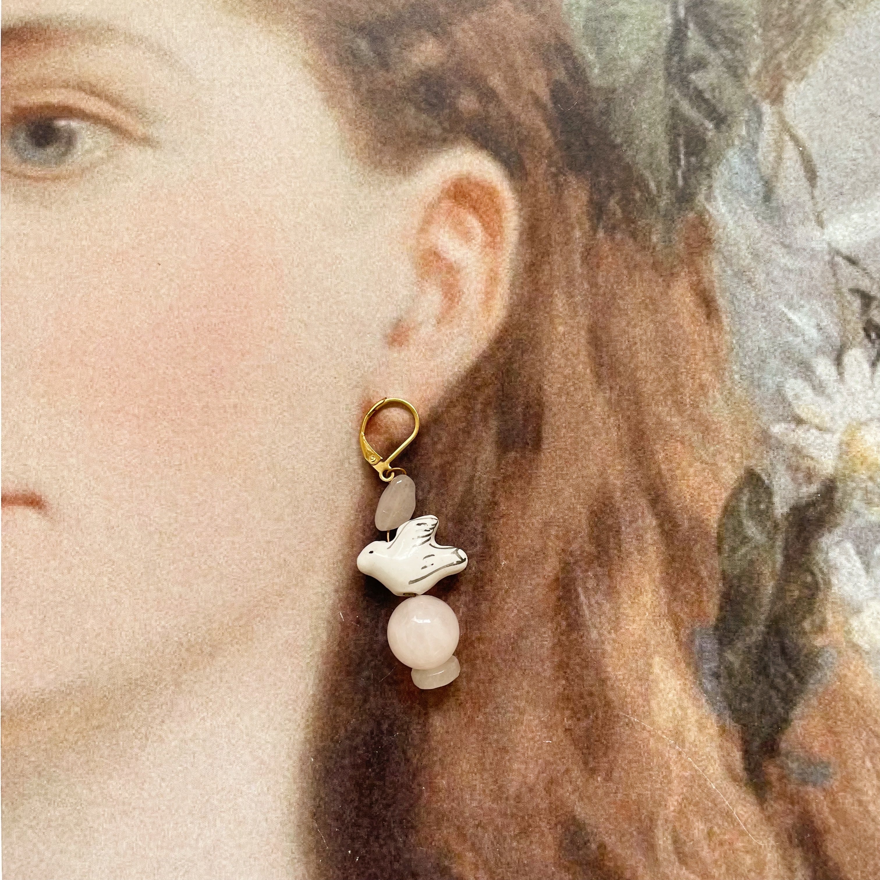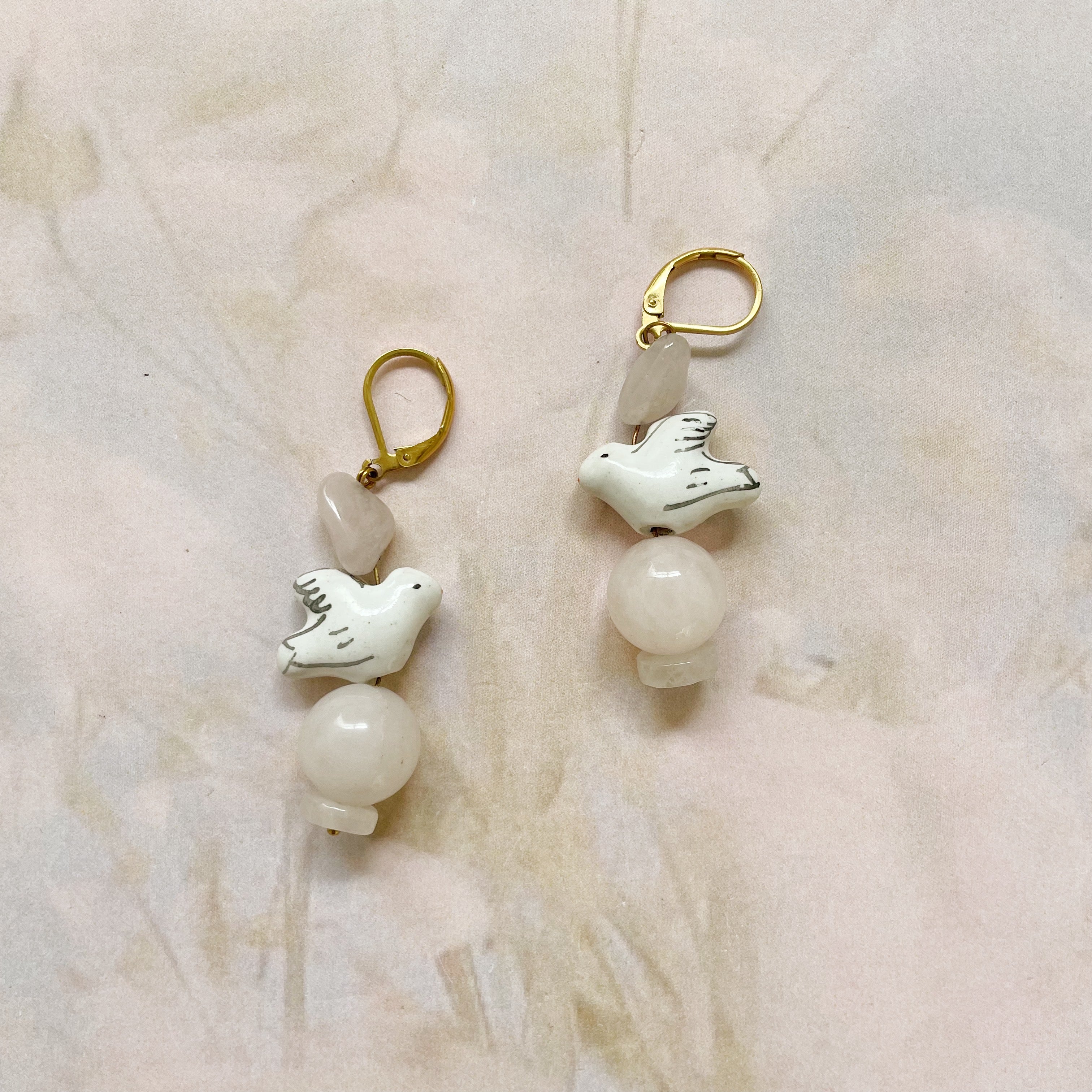 • Palomas en cerámica y piedras naturales (cuarzo rosa)