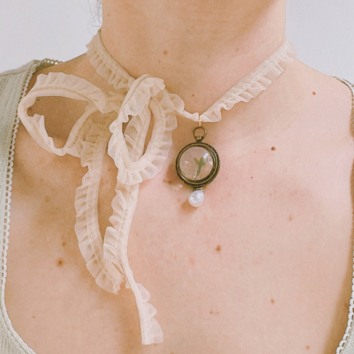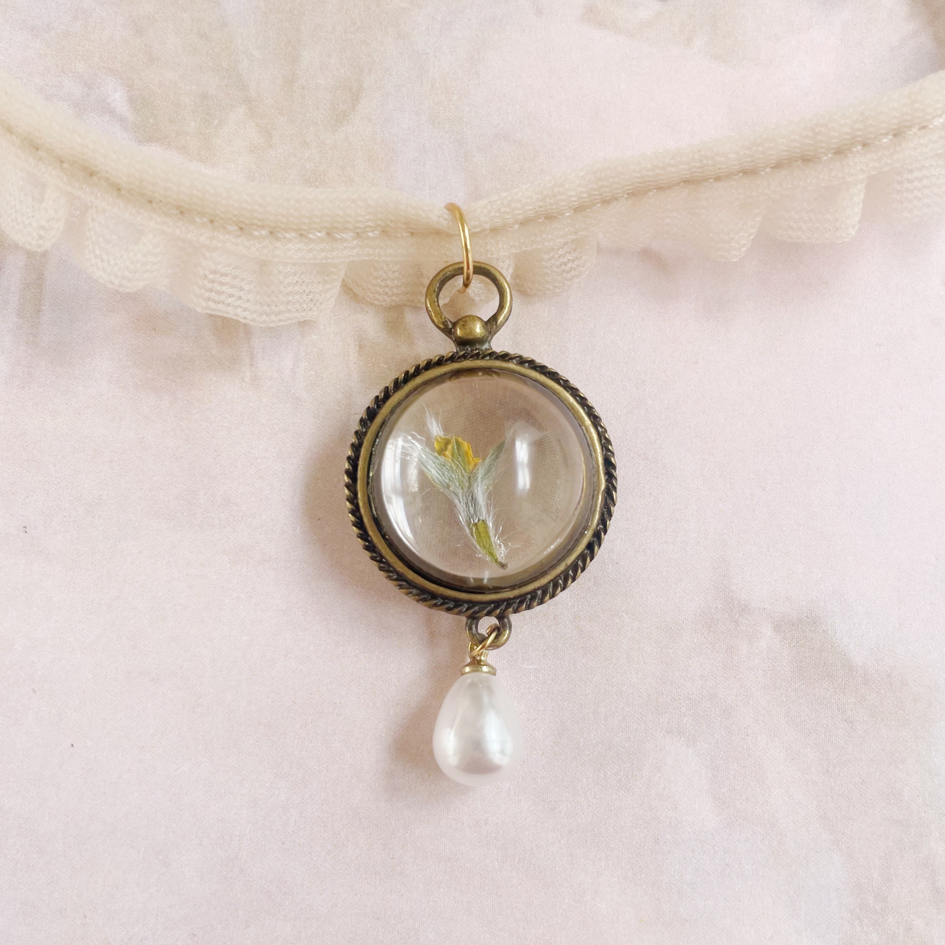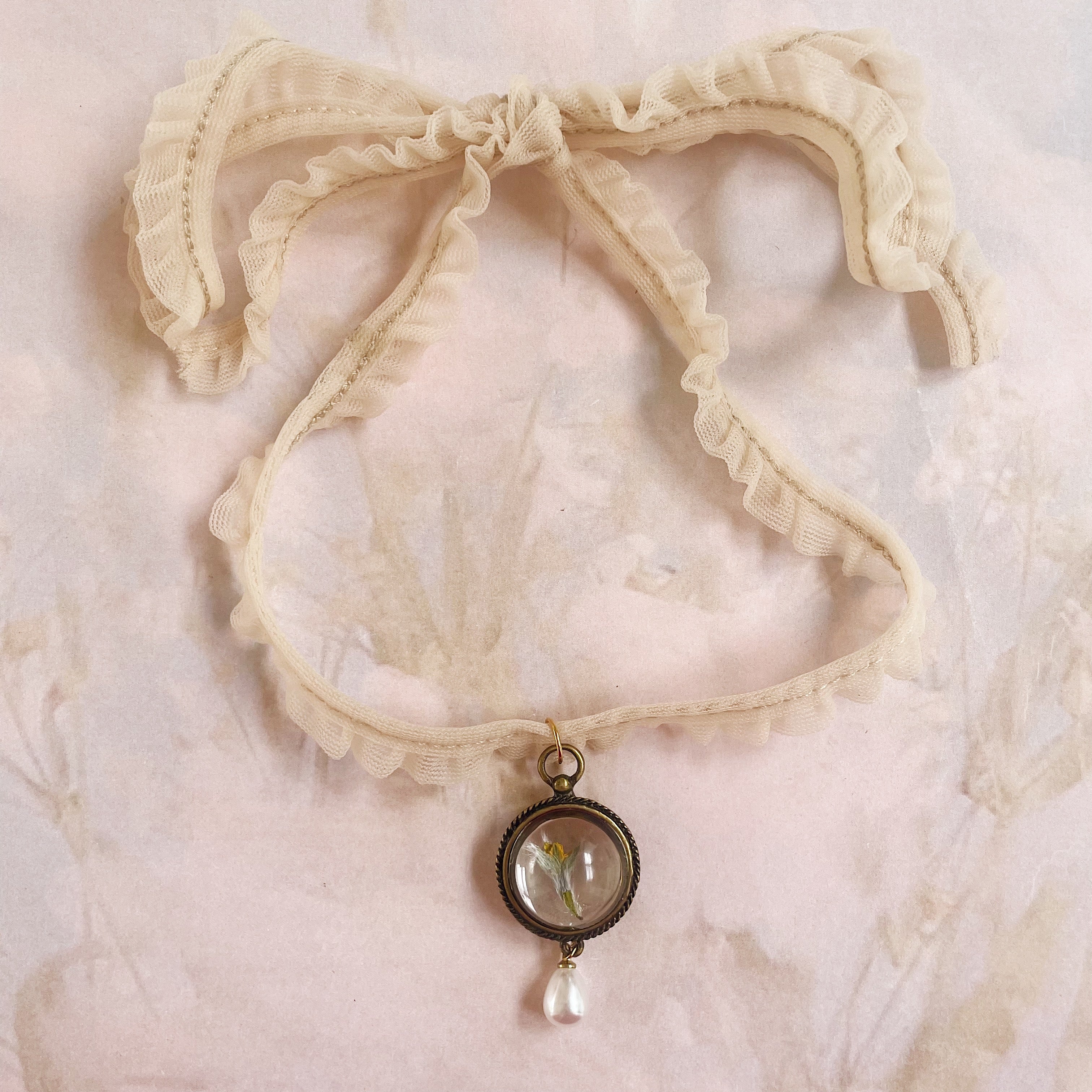 Gargantilla flor prensada
