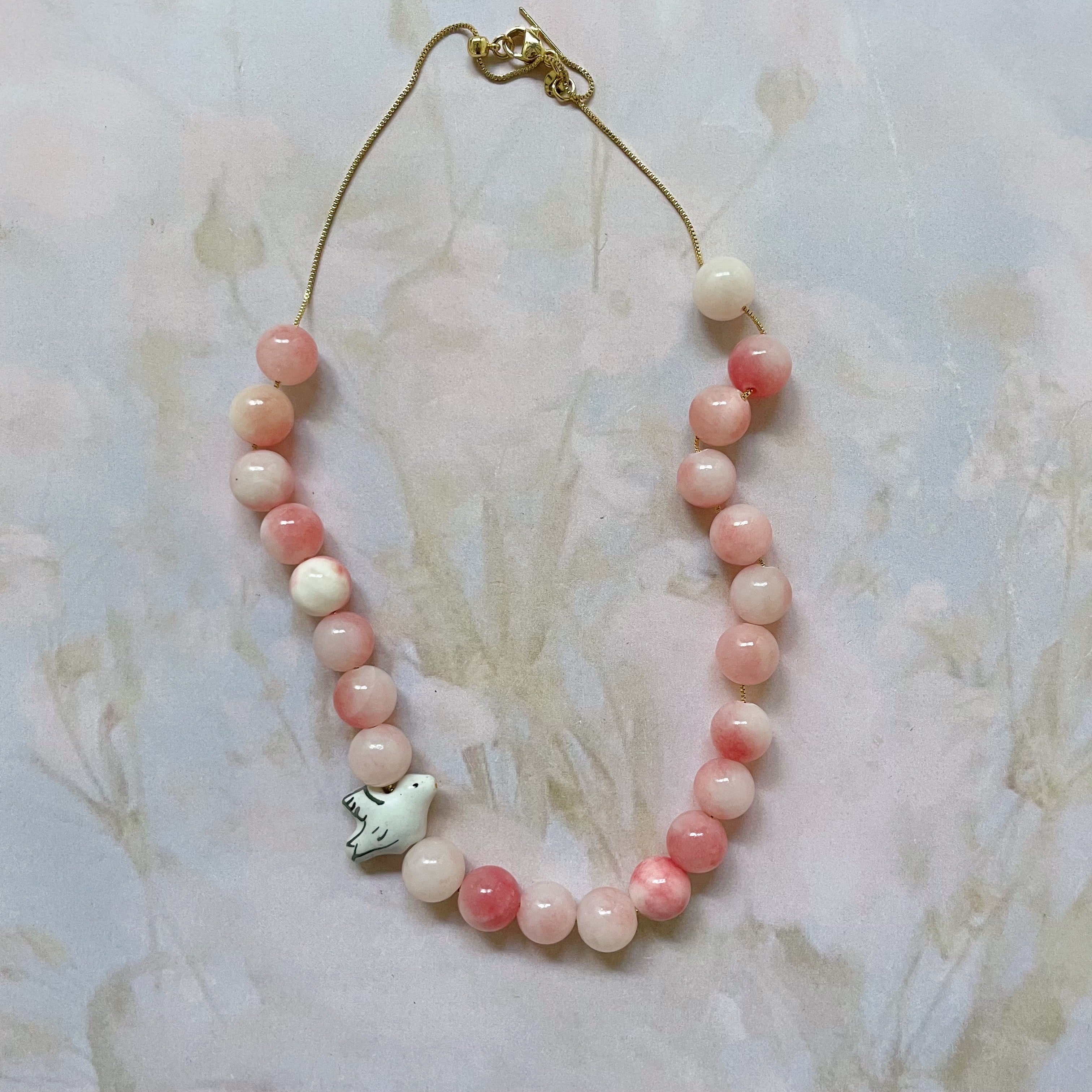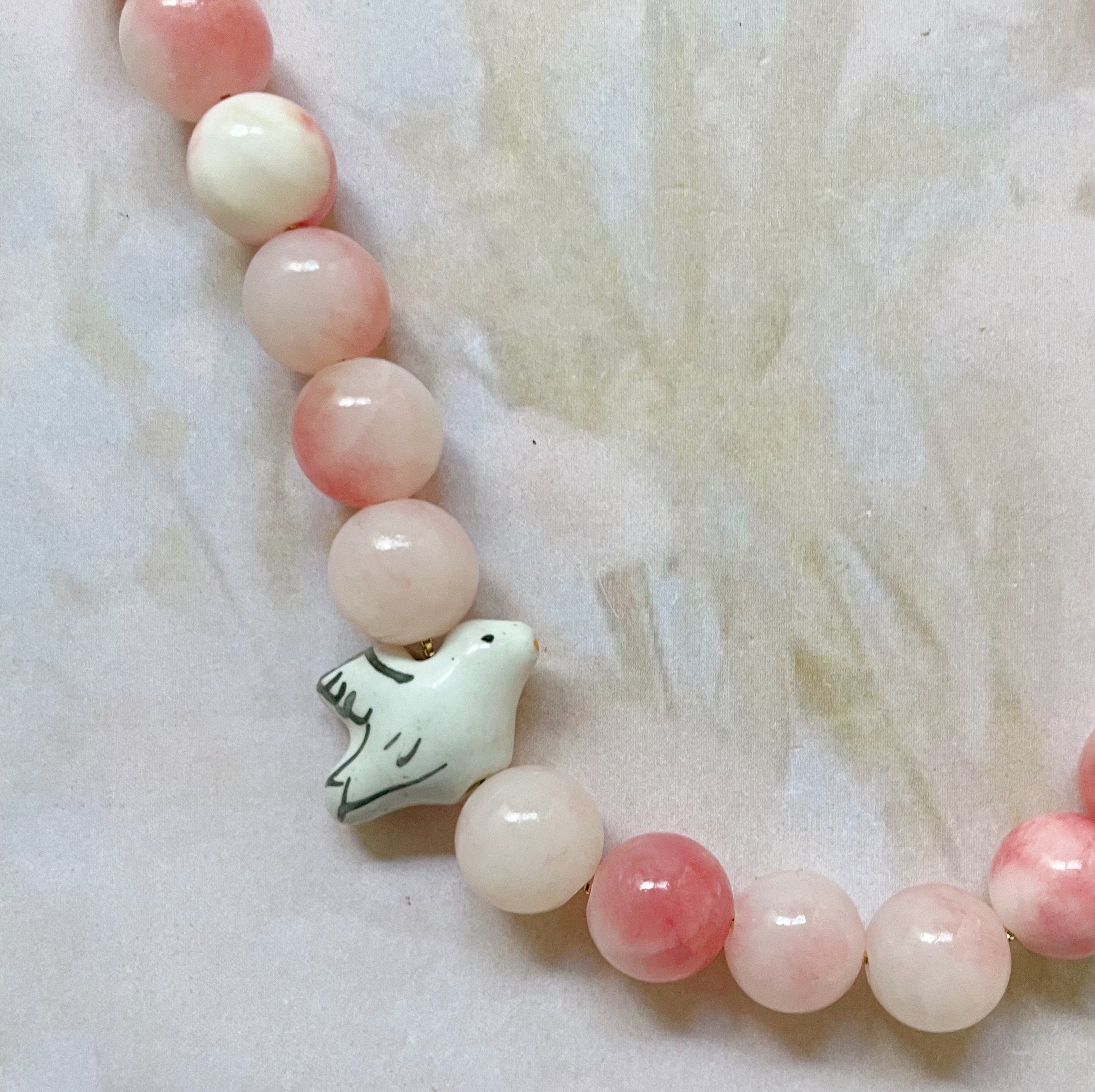 Collar cadena en golfie piedras : Rodocrosita . paloma en cerámica.